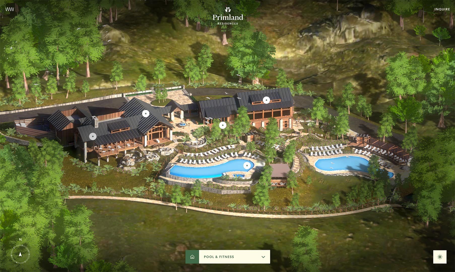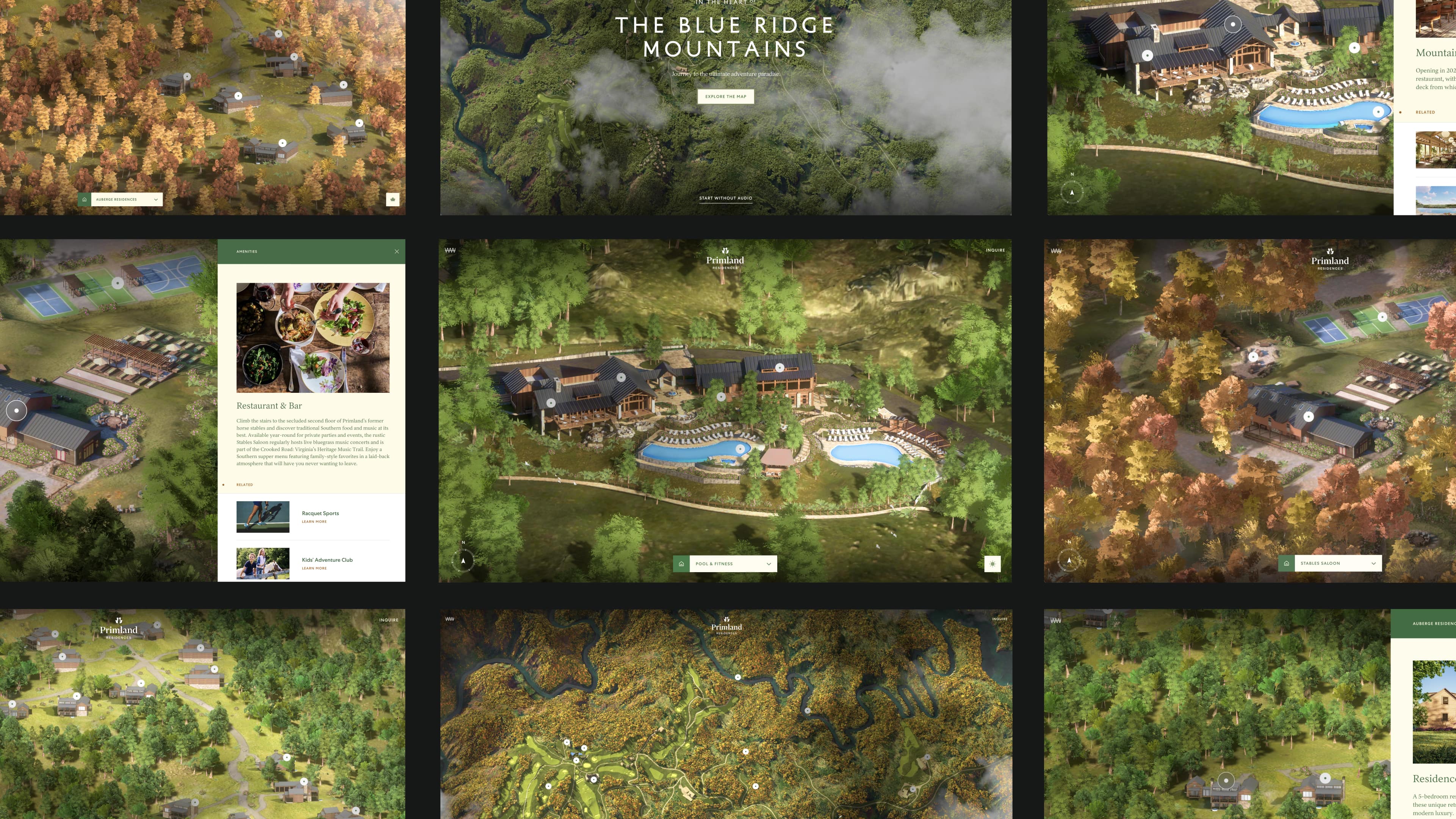 Beyond the primary website, we were tasked with bringing the Primland estate to life in a virtual environment—a digital sales tool that would captivate visitors on large showroom screens and tablets. But we didn’t stop there. This experience also needed to be accessible to a global audience, letting anyone explore the estate from anywhere, on any device. Our challenge was to translate the vast scale, breathtaking vistas, and serene beauty of the Blue Ridge Mountains into a digital world so immersive that users could feel as if they were truly there—wandering the trails, discovering hidden corners, and experiencing the magic of Primland firsthand.